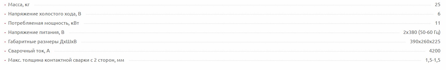 - максимальный сварочный ток: 4200 А;
