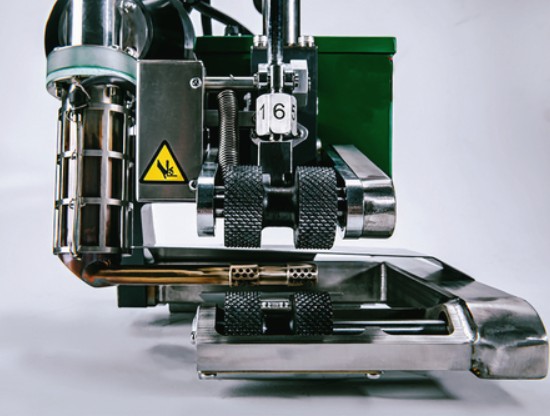 Особенность аппарата — инновационный комбинированный клин, который совмещает точный нагрев от металлического элемента и равномерное распределение тепла за счёт потока горячего воздуха. Такой подход позволяет достигать идеального сплавления кромок даже при изменении внешних условий — перепадах температуры, влажности или при работе на вертикальных и наклонных поверхностях.