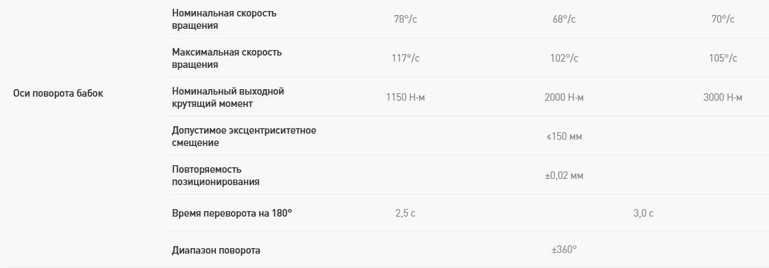 - жёсткая силовая конструкция в сочетании с редукторами RV‑типа обеспечивает: