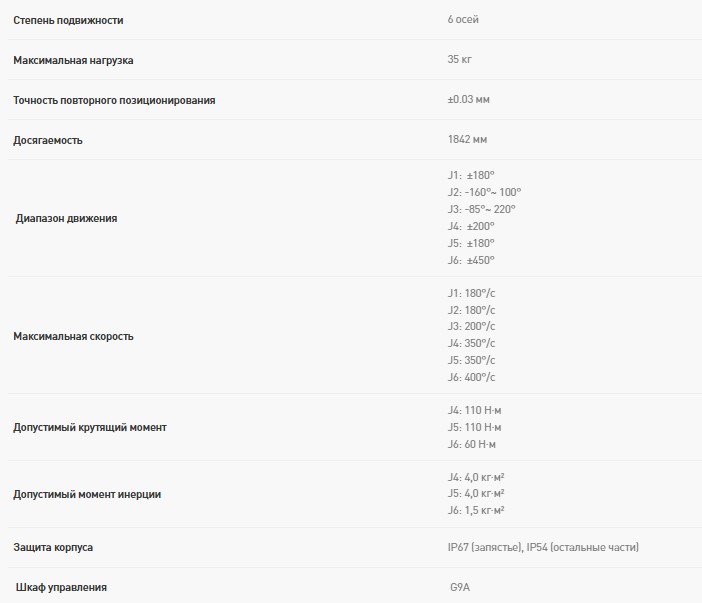 - досягаемость — 1842 мм (обслуживает сразу несколько станков или крупную деталь целиком);