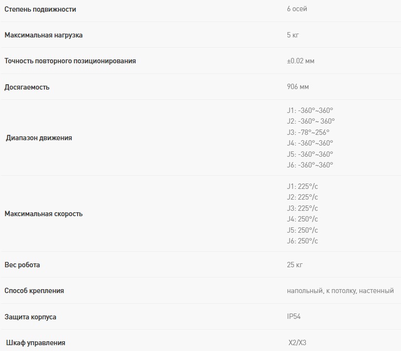 • Встроенный дисплей — позволяет оперативно регулировать скорость работы и мониторить важнейшие показатели: текущее положение робота, скорость перемещения и исполняемые команды.