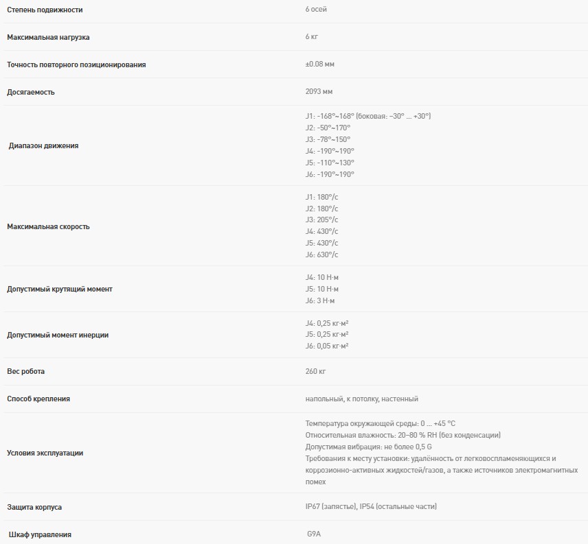 Серия RH‑06 представляет собой линейку передовых шестиосевых роботов, разработанных специально для автоматизации дуговой сварки в условиях серийного производства. Ключевая особенность — сбалансированная грузоподъёмность: номинальная полезная нагрузка составляет 6 кг, что оптимально для работы со сварочным оборудованием.